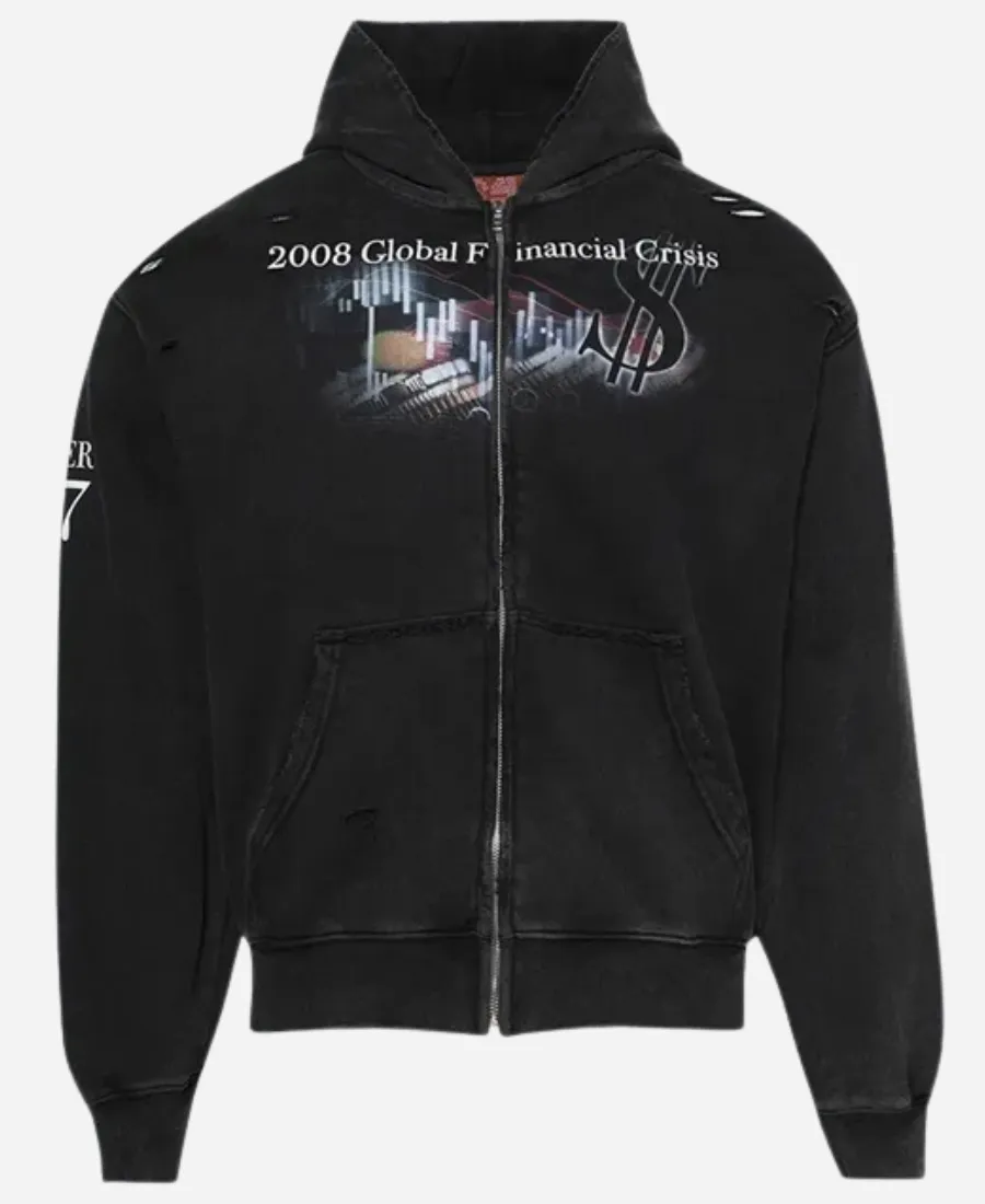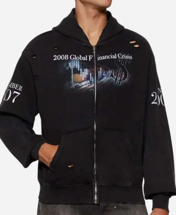 Unisex 2008 Global Financial Crisis Destroyed Black Zipper Hoodie
