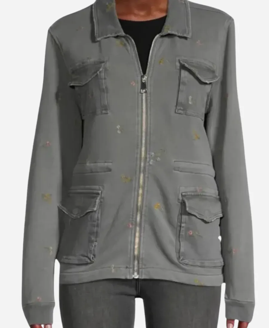 Zara Floral Joey King A Family Affair 2024 Embroidered Grey Jacket
