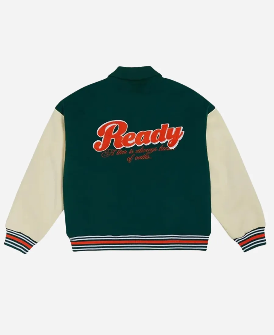 Unisex A Liar Is Always Lavish Of Oaths Ready Green & White Letterman Varsity Jacket