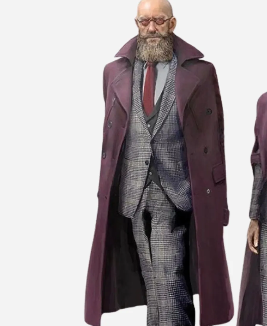 Richard E. Grant A Series of Unfortunate Events Season 03 Man With Beard But No Hair Maroon Trench Coat