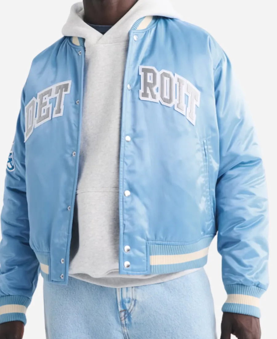 Unisex Abercrombie Detroit Lions Blue Bomber Jacket – For Sale