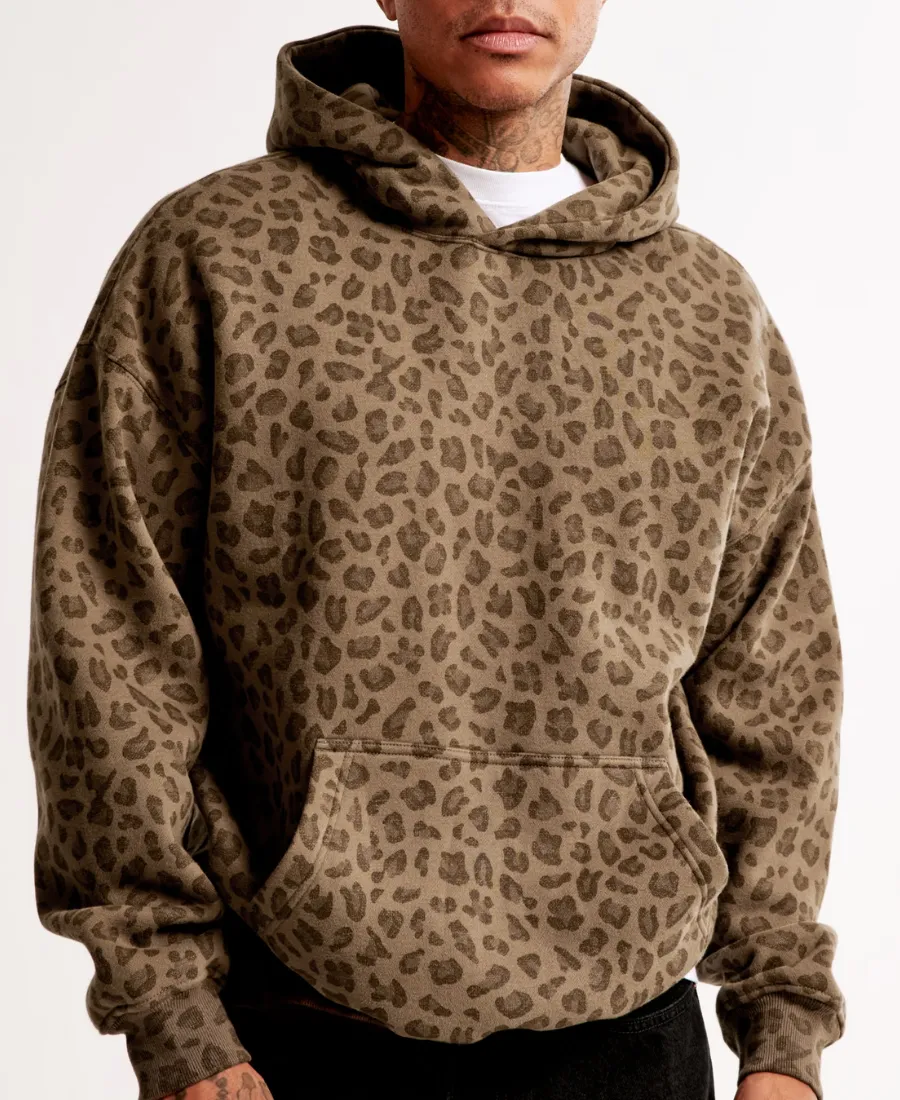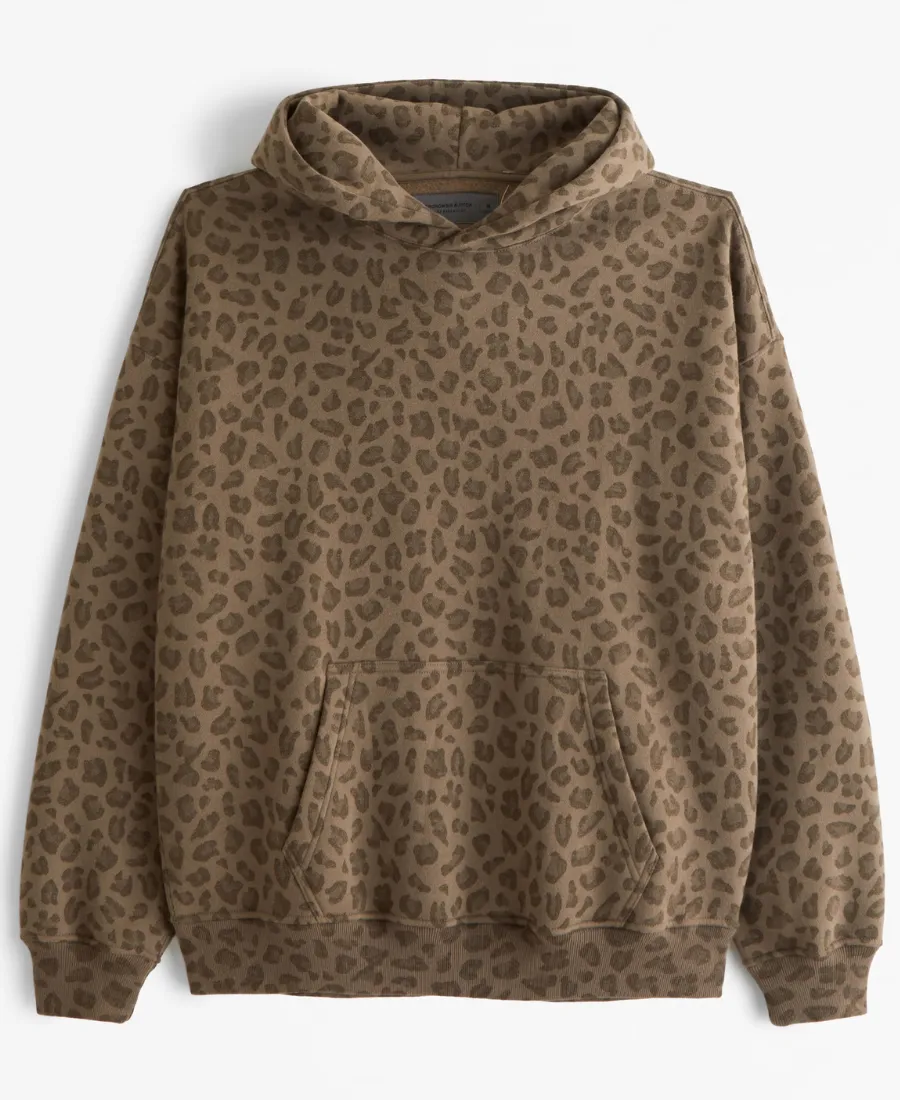 Unisex Abercrombie Essential Popover Leopard Pattern Hoodie