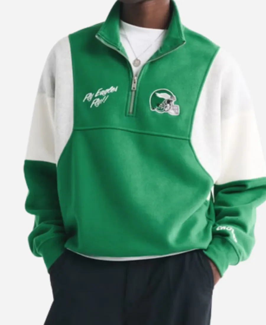 Abercrombie NFL Philadelphia Eagles Half-Zip Green Sweatshirt