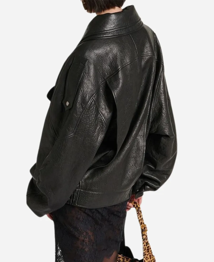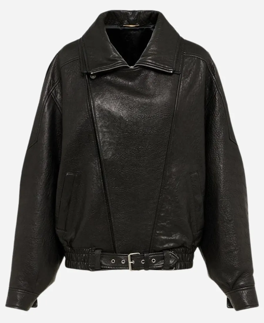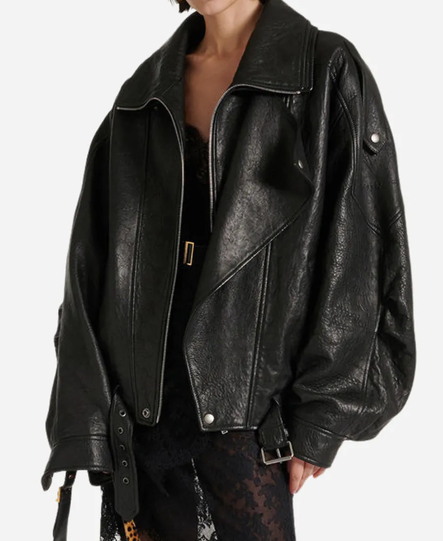 Abigail Reese Tv Series The Madison 2026 Beau Garrett Oversized Black Leather Jacket