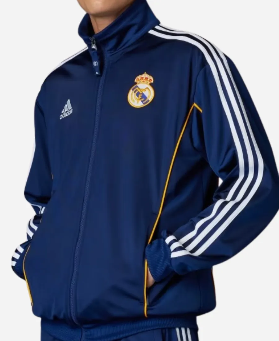- Front: Full-zip, side pockets, Real Madrid crest & adidas logo