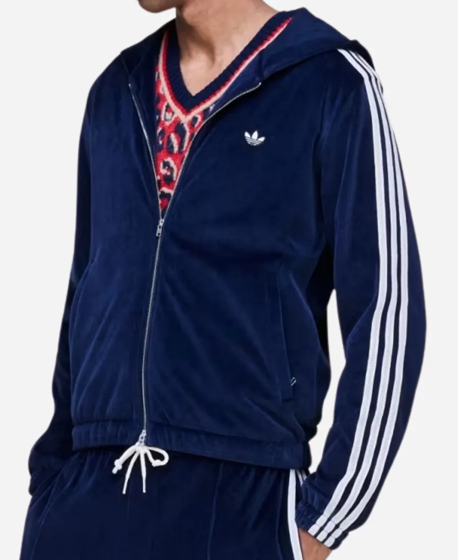 Casual, stylish, and unmistakably premium. This Adidas x Wales Bonner Velour Track Jacket is not an ordinary jacket. But it’s a jacket that helps you turn heads stylishly, stepping into luxury streetwear. For the fans, especially those who adore style with comfort, this velour blue track jacket is an ideal investment. Furthermore, it’s a limited-edition, premium sportswear item that comes from an iconic collab between two different and powerful legends. It is a part of the collaboration between Adidas and Wales Bonner, a London-based fashion label by designer Grace Wales Bonner. On the other hand, this tempting velour blue track jacket is now here at Jacket Era as an excellent imitation. So, to elevate your track style or to redefine streetwear, this alluring track jacket is a must-have.
