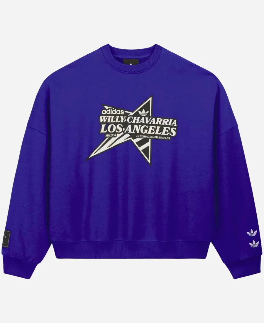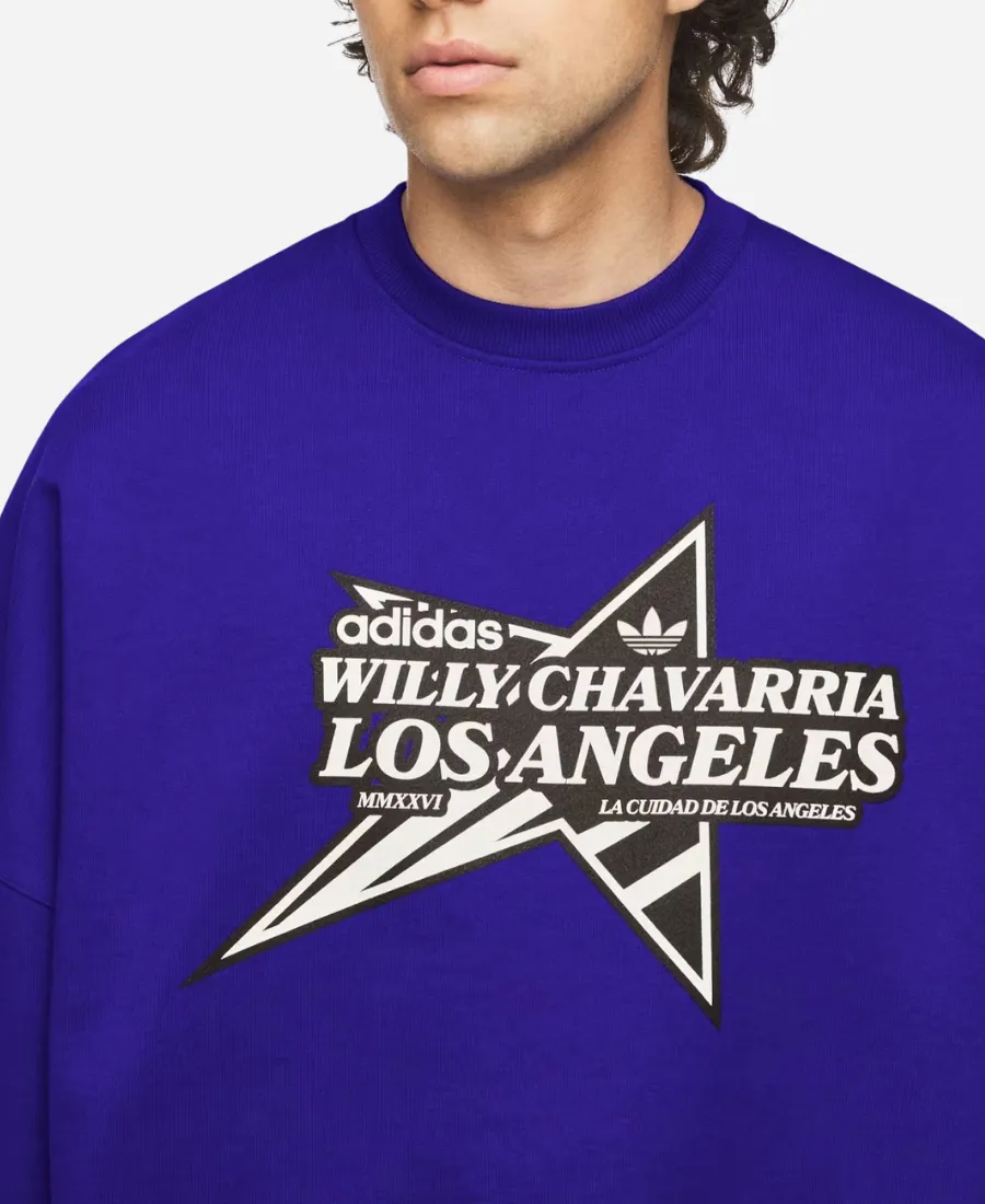 Unisex Adidas x Willy Chavarria Star Logo Blue Crewneck Sweatshirt