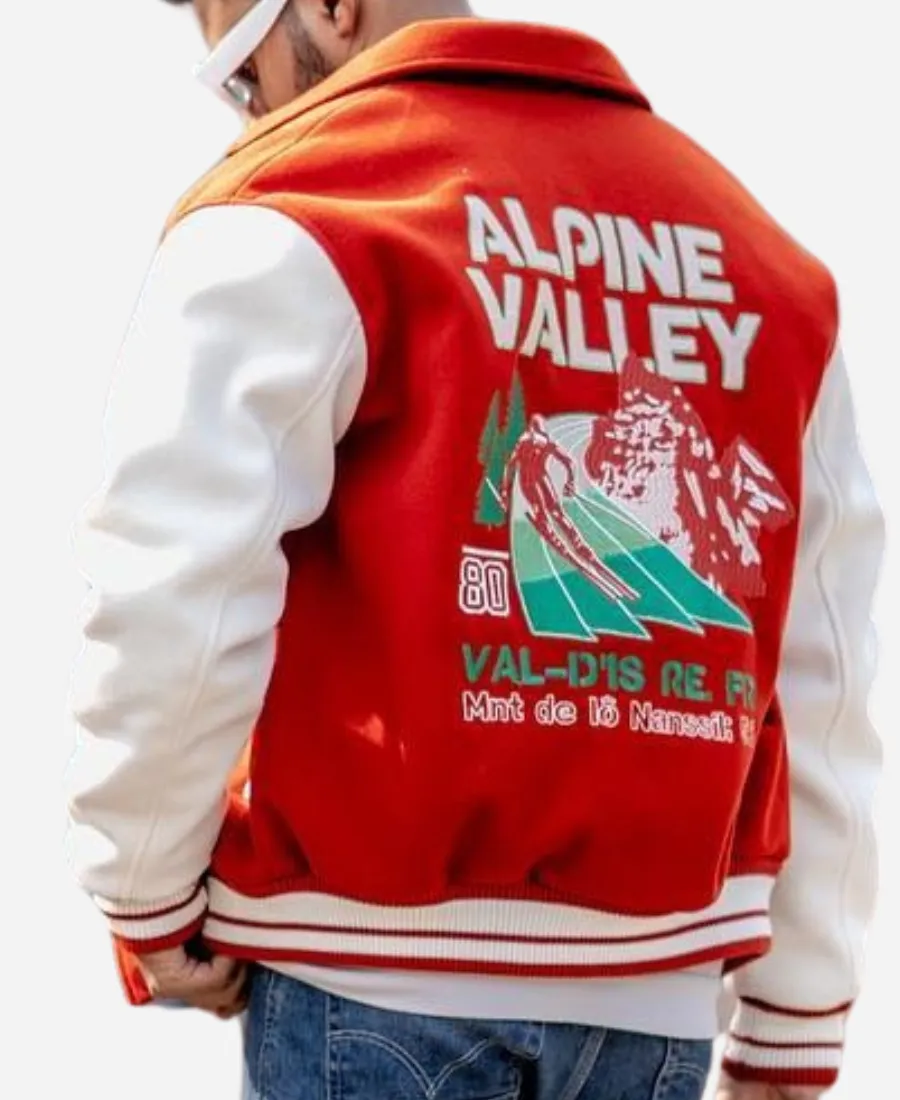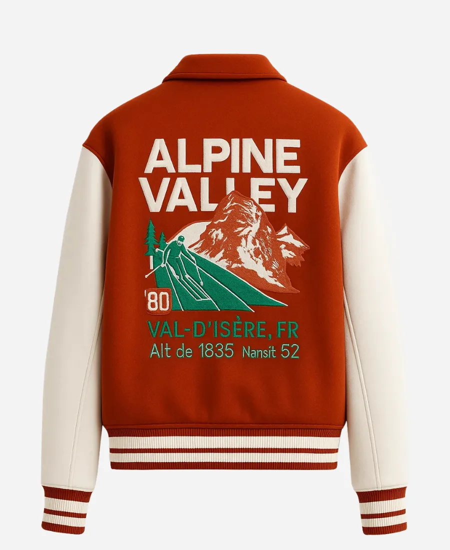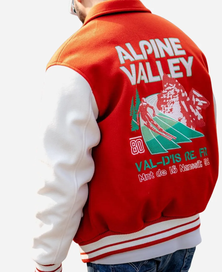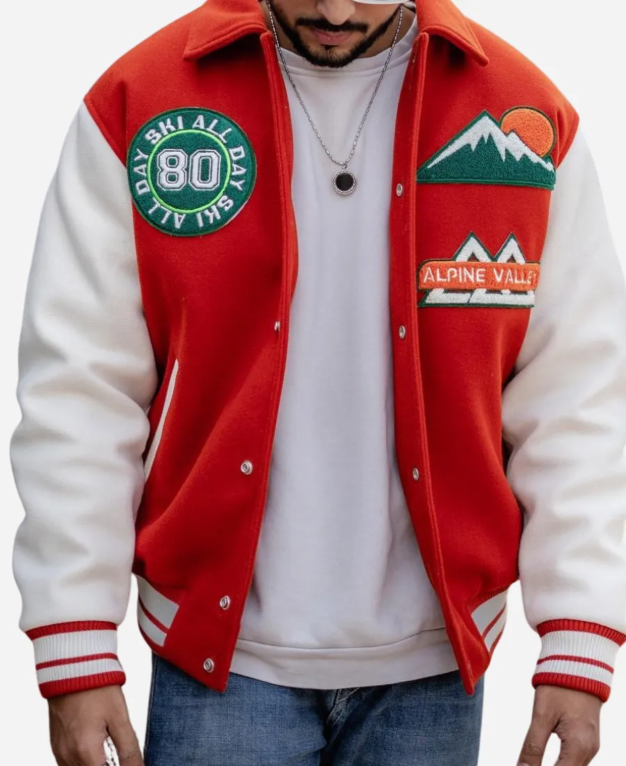 All Day Ski 80 Alpine Valley Orange And White Varsity Jacket – For Sale