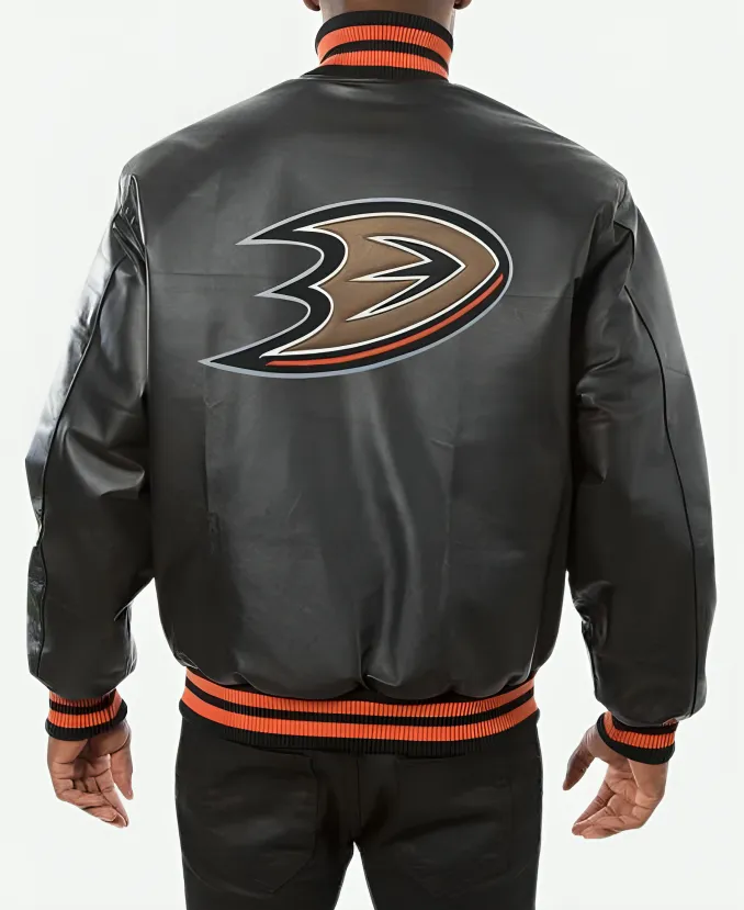 Anaheim Ducks Black Full Leather Varsity Jacket
