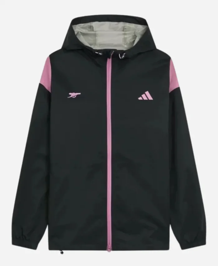 Women’s Arsenal Adidas Golf Rain Black Hooded Zipper Jacket For Sale