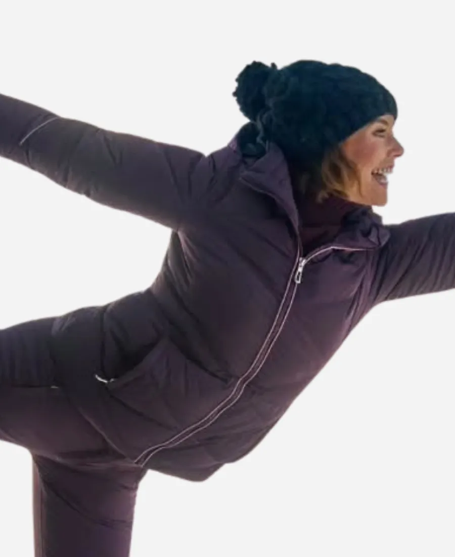 Ashley Williams An Alpine Holiday Movie 2025 Faith Purple Quilted Puffer Jacket