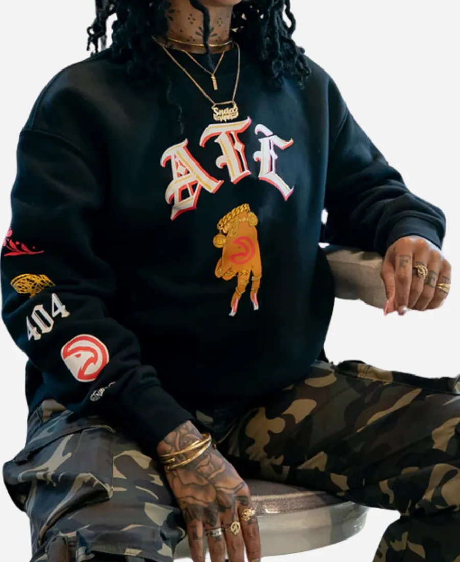 Atlanta Hawks x Debbi Snax Black Pullover Fleece Crewneck Sweatshirt