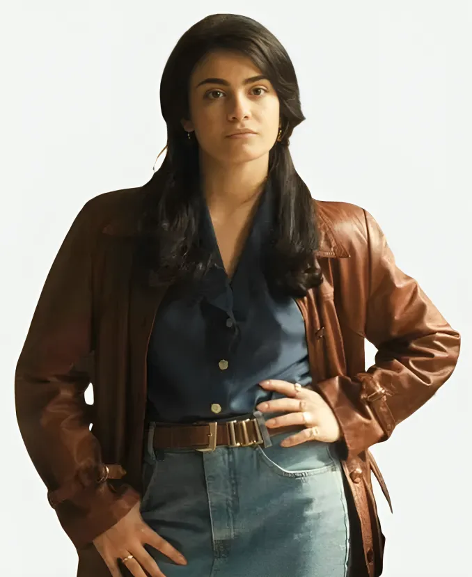 Virginia The Big Fake 2026 Aurora Giovinazzo Brown Leather Coat