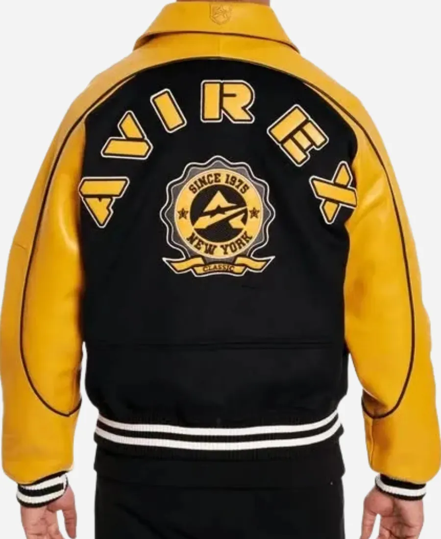 Unisex Avirex Classic Wool Black & Gold Leather Varsity Jacket