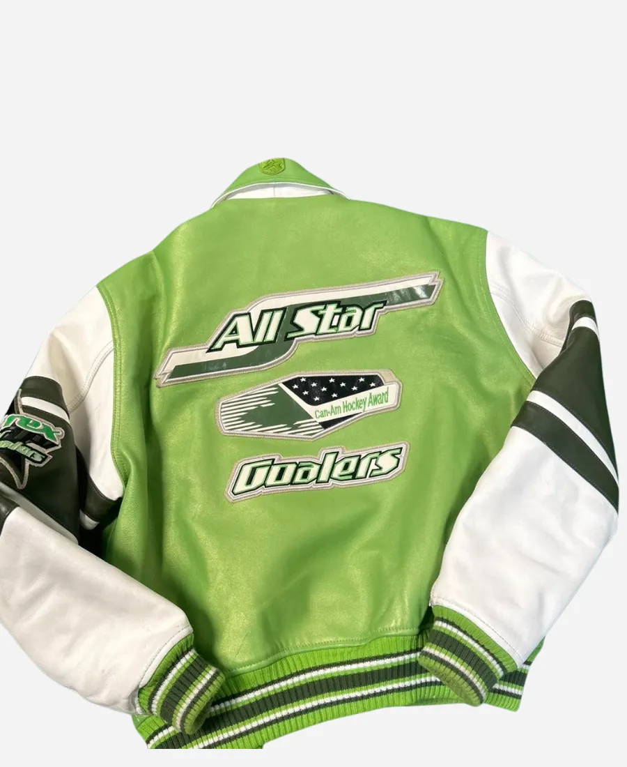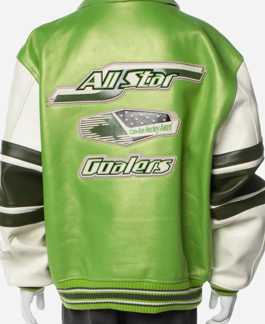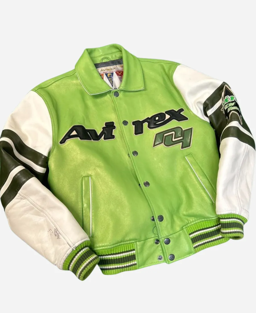 Men’s New Avirex Stars & Stripes Lime Printed Green Leather Varsity Jacket
