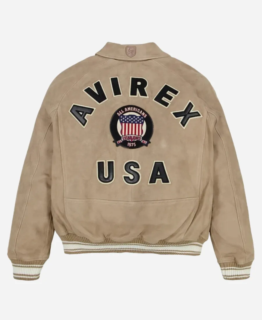 Unisex Avirex Limited Edition Suede Icon Beige Bomber Jacket – For Sale