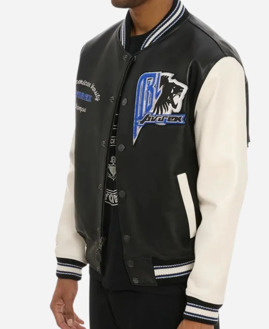 Men’s Avirex Lions Black Real Leather Varsity Jacket
