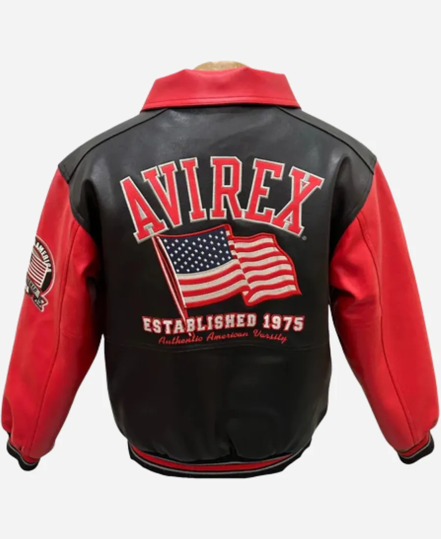 Men’s Avirex USA Edition Red & Black Leather Bomber Jacket