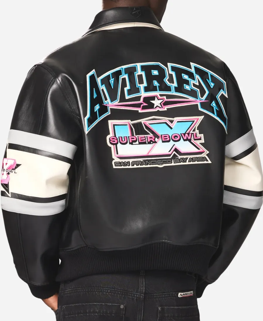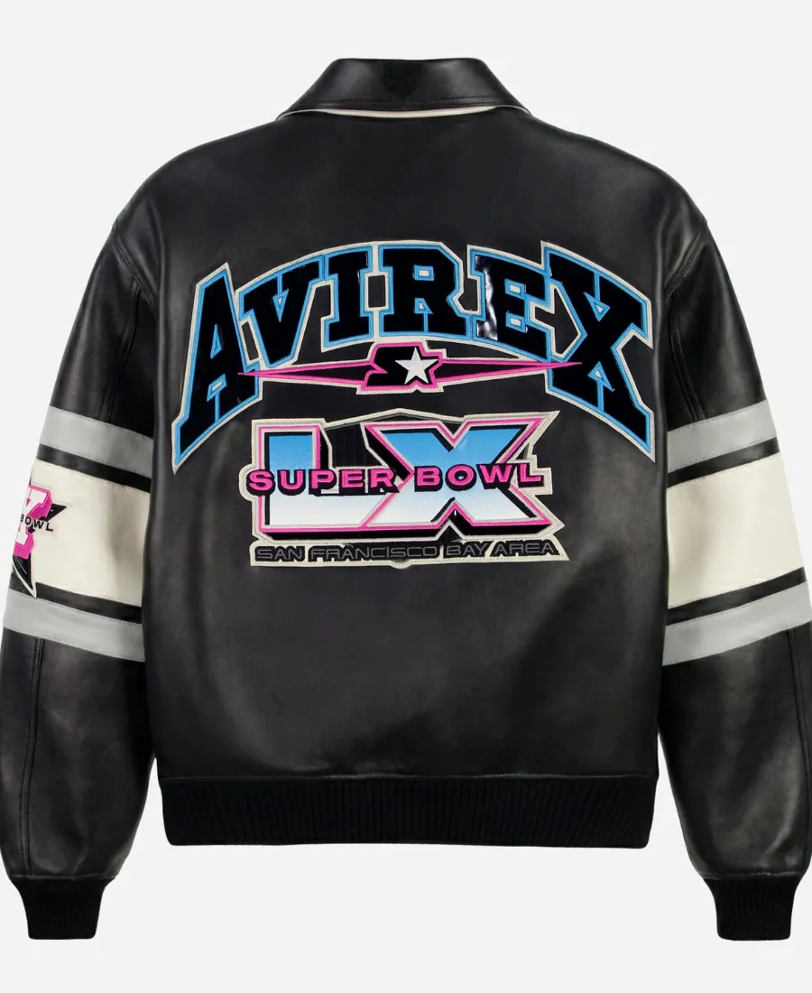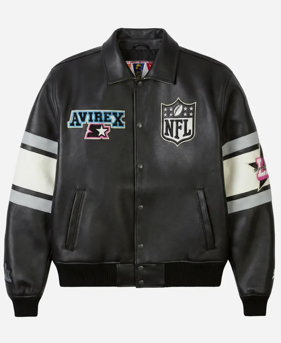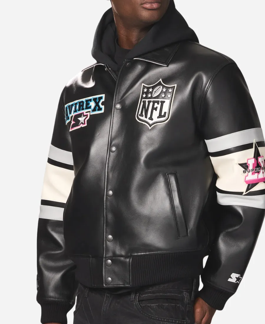 Avirex x Starter Super Bowl LX Black Leather Bomber Jacket