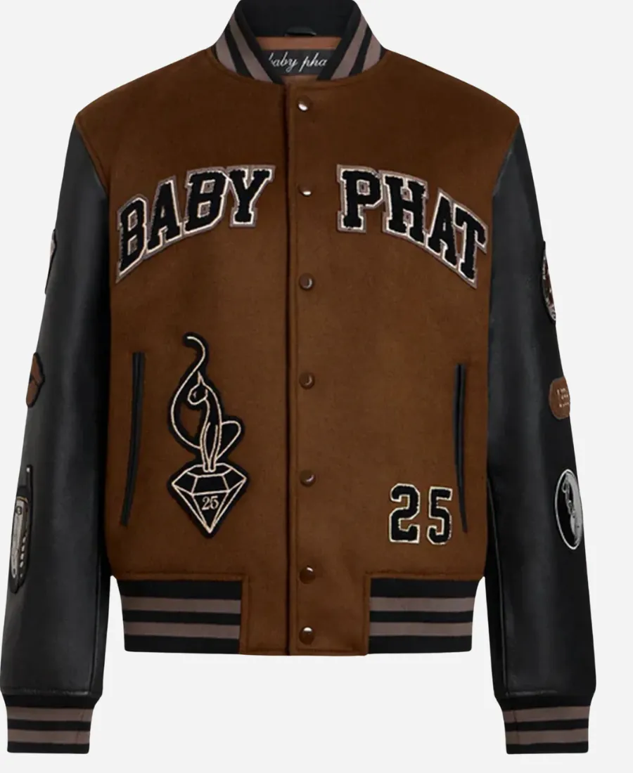 Baby Phat Letterman Varsity Jacket – Brown, Black & Pink
