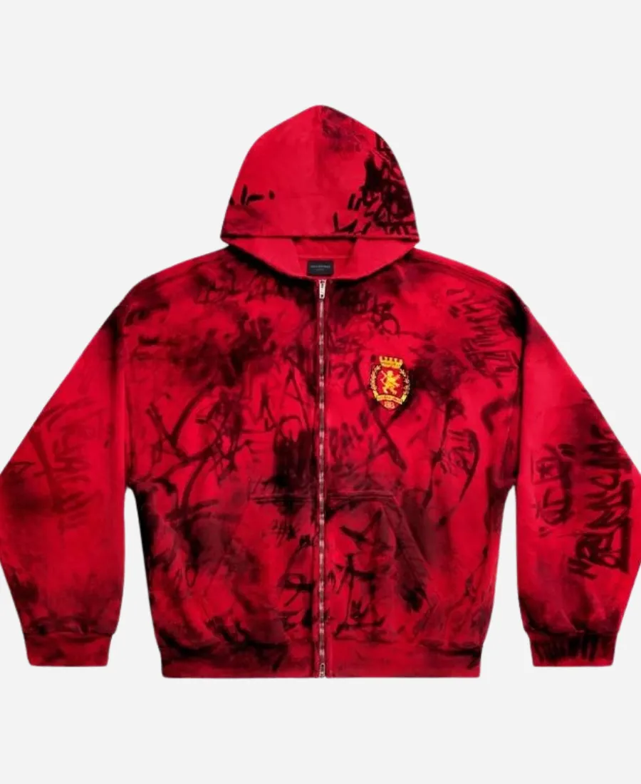 Unisex Balenciaga Skater Red Zip-up Hoodie – For Sale