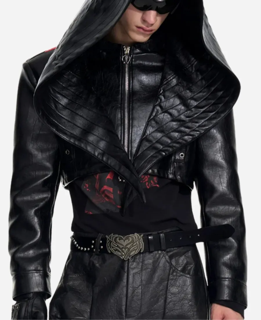 Bat Hats Black Hooded Short Leather Jacket
