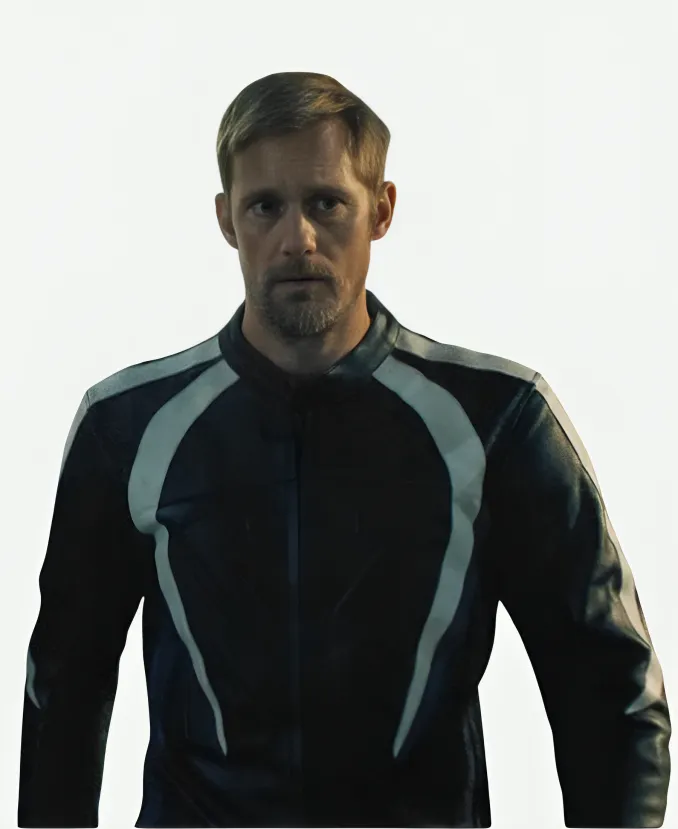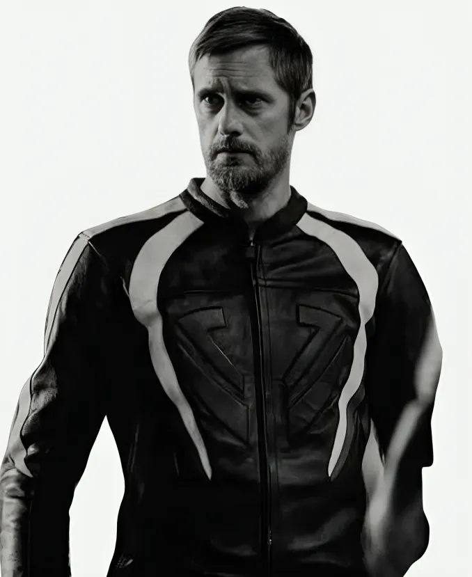 Alexander Skarsgård Film Pillion 2025 Ray Black Racer Leather Jacket