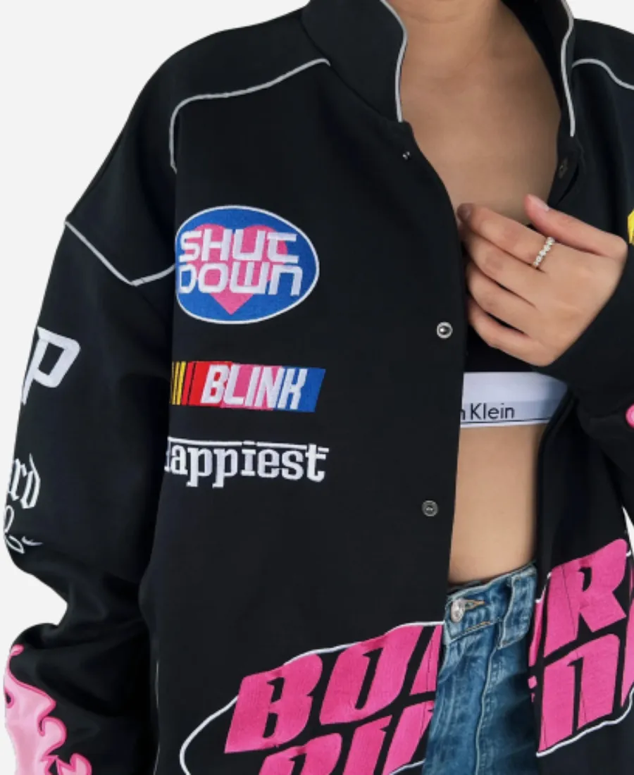 Bored with your old jackets? Looking for a trendy one full of modern motorsports-style aesthetics? Then take a slide into this captivating Pink Racer Born Jacket, where top-notch craftsmanship meets premium comfort. Not only does this beautiful oversized racer jacket keep you comfortable. But it will enhance your outlook with the contemporary appeal you desire. Furthermore, it helps you score engaging compliments on your trendy racer look without trying hard. For those who want to look prominent without wearing anything heavy, this racer jacket is the best addition for them. On the other hand, modeling this immaculate racer outerwear allows you to make a powerful style statement. So, what are you waiting for? Grab this alluring masterpiece now to boost your streetwear style with modern glam!