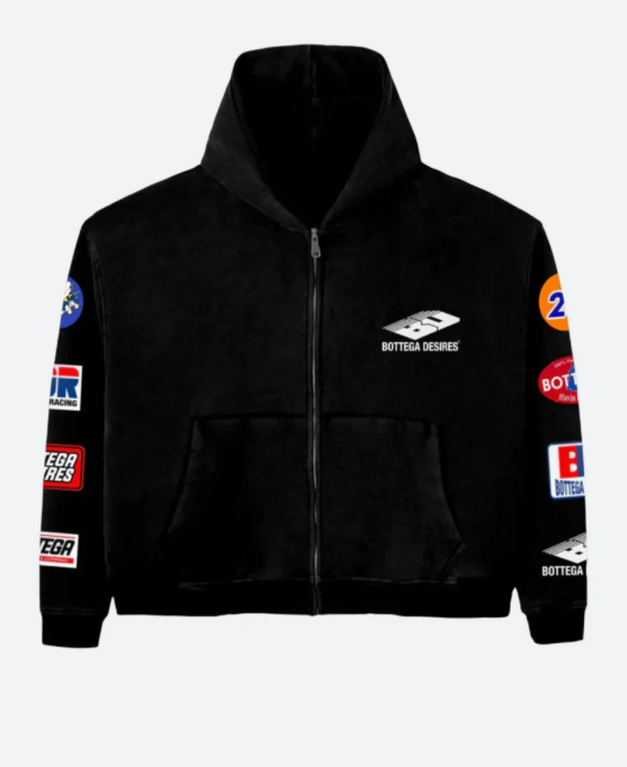 Bottega Desires Velvet Black Patches Hoodie For Sale