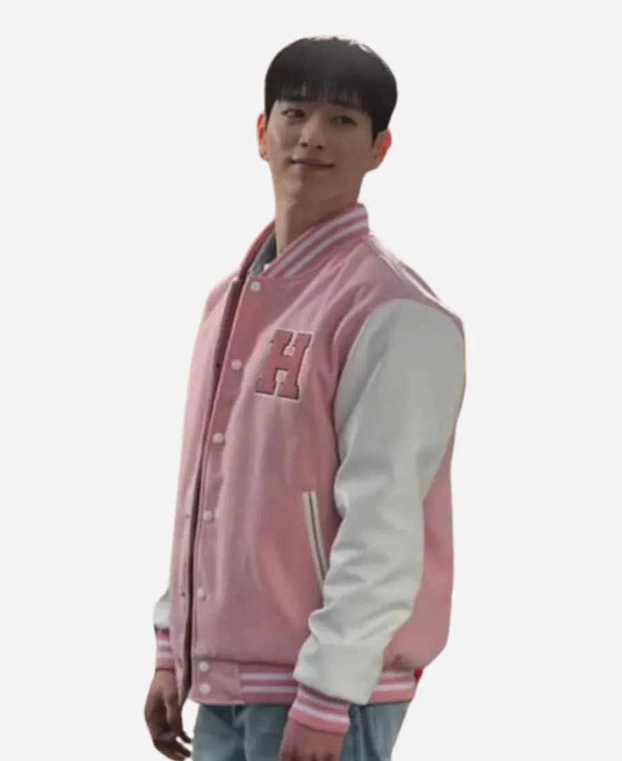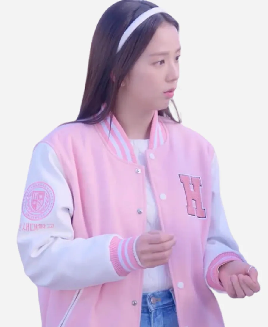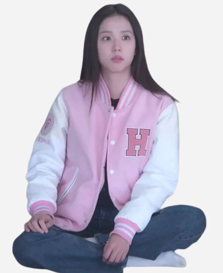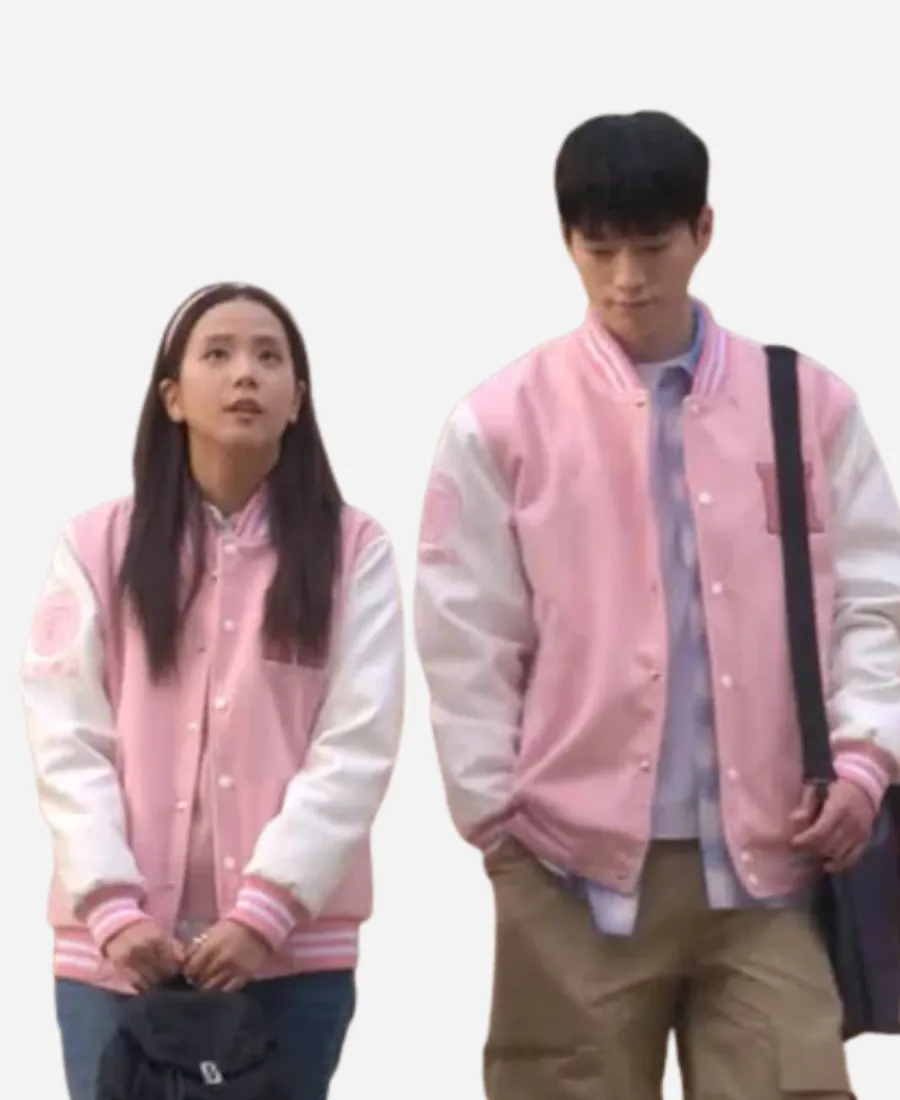 When playful charm meets timeless style, the magic happens. This tempting Boyfriend on Demand Jisoo Varsity Jacket is an ideal example. Not only for the fans of the gorgeous South Korean singer, Jisoo. But this trendy pink-and-white varsity jacket is also an ideal addition for those who want to look sassy without trying hard. Moreover, this immaculate pink-and-white beauty comes from the closet of Seo Mi-rae. She is the lead character of the 2026 South Korean romantic comedy television series Boyfriend on Demand. Our favorite Jisoo, who is also a member of the South Korean girl group Blackpink, wears this varsity jacket. On the other hand, Jisoo wears this glamorous varsity jacket while portraying Seo Mi-rae in Boyfriend on Demand. Wearing this striking jacket, she provides her fans with a new, fashionable essential. So, to capture the essence of youthful elegance and contemporary K-fashion, this jacket is a must-have.