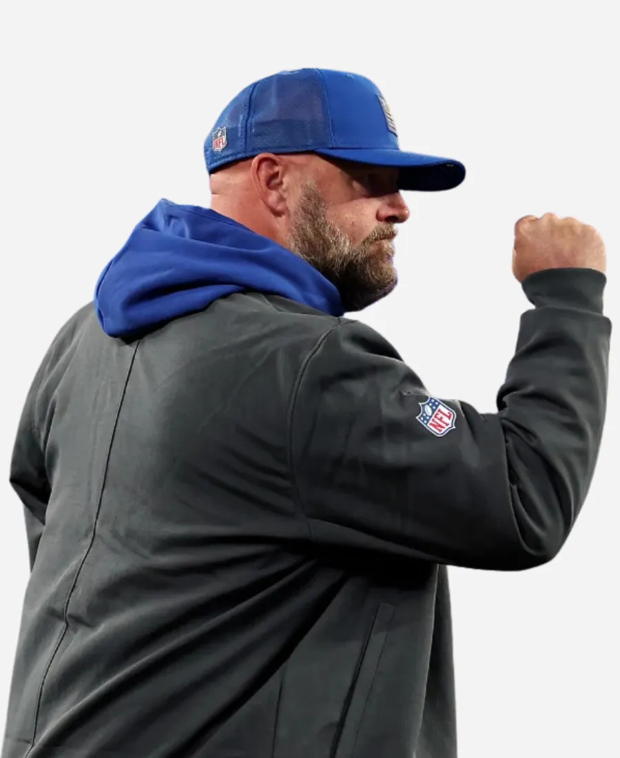 Want to wear a jacket that helps you channel the grit, focus, and leadership of Brian Daboll? Take a slide into the famous and sleek Brian Daboll Giants Jacket. A masterpiece that is built for true fans who live and breathe Big Blue. Furthermore, this black creation originates from the collaboration between Nike and the NY Giants. The head coach of the NFL team, the New York Giants, Brian Daboll, wears this alluring black bomber jacket. On the other hand, it’s the best investment. It infuses the sideline swagger of Coach Daboll with team pride and a sharp modern edge. No matter where you’re going, this elegant bomber jacket is your ticket to repping the G-Men in ultimate style. So, what are you waiting for? Grab this right now to gracefully and confidently carry the Giants’ pride!