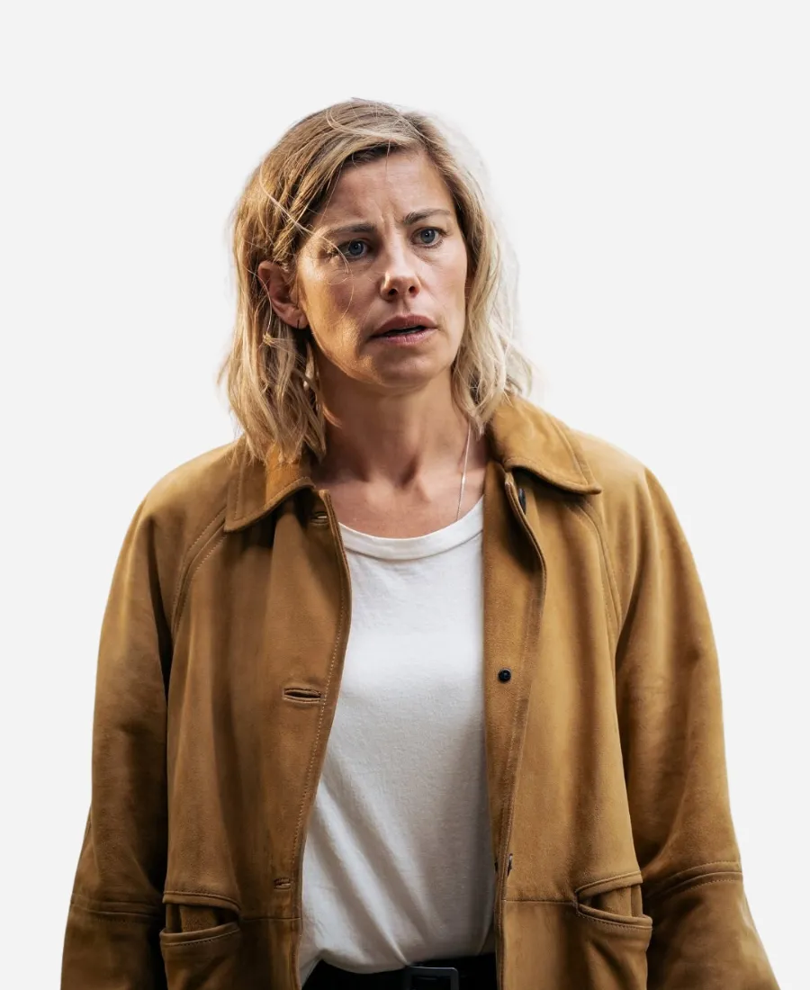 Lillian Vandenberg Dear Life 2026 Brooke Satchwell Brown Suede Leather Jacket