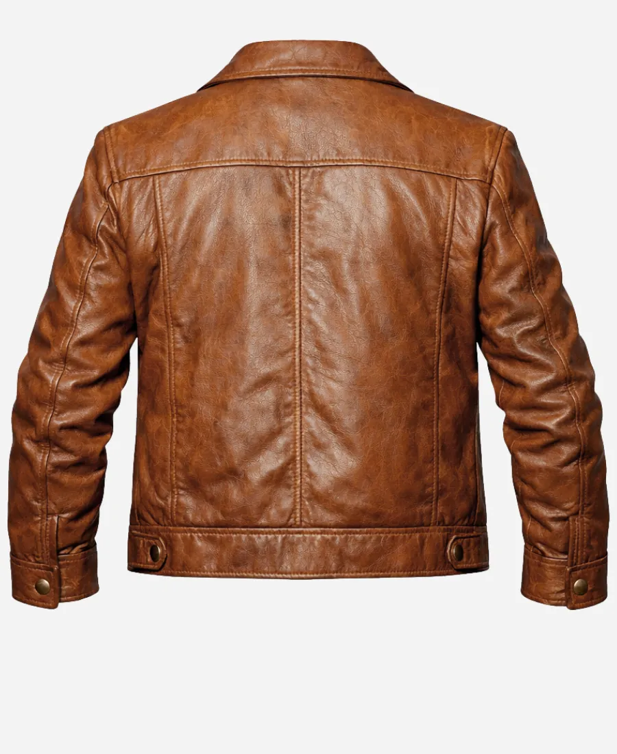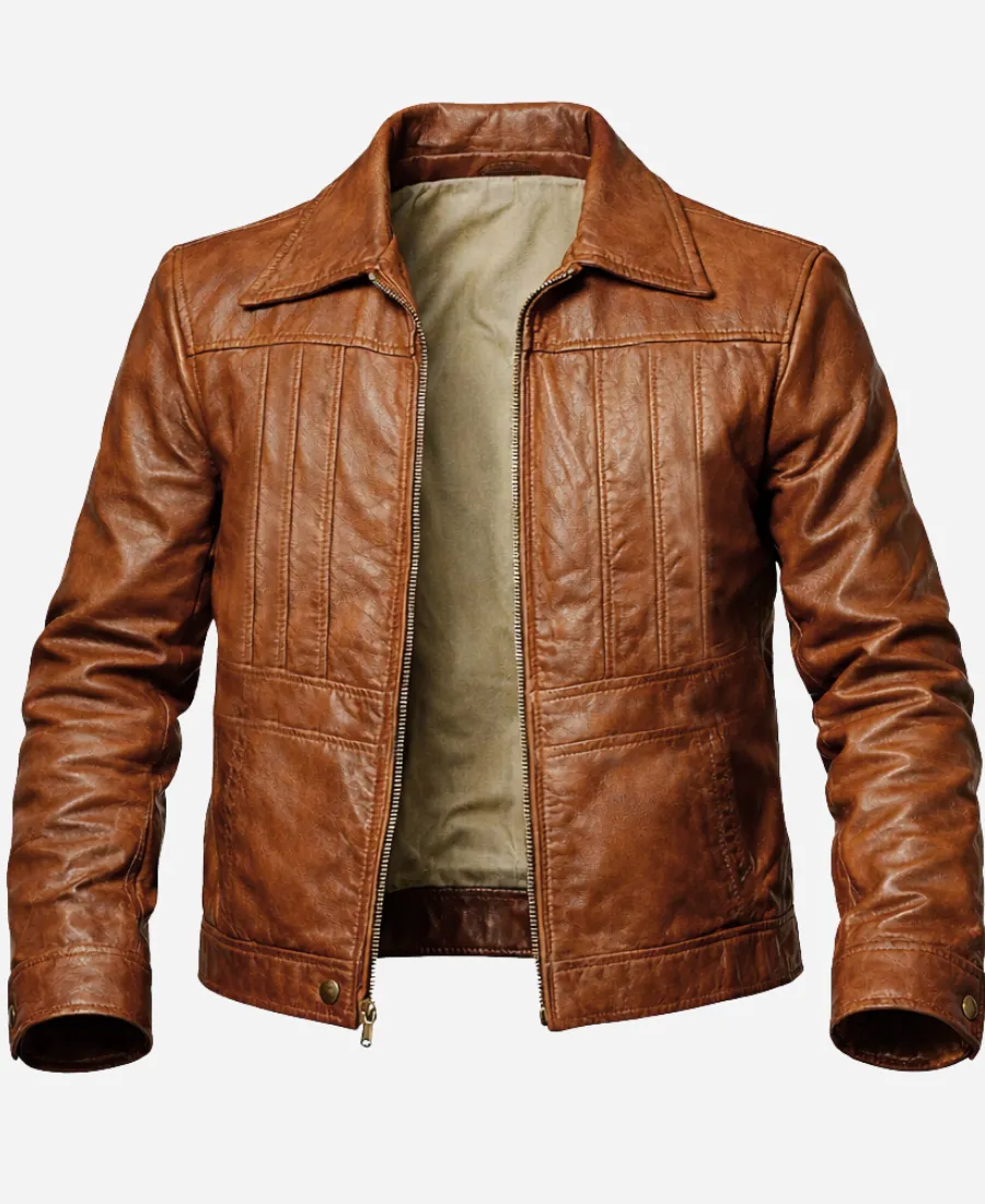 Men’s Brown Bomber Leather Jacket with Rib Collar