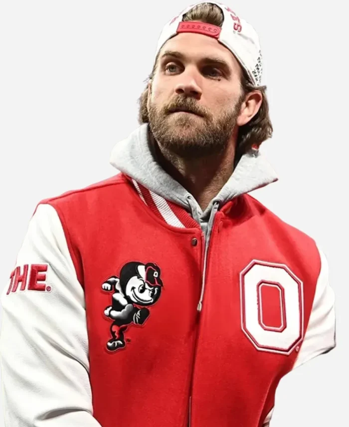 Bryce Harper Ohio State University ‘O’ Patch Logo Red & White Varsity Jacket