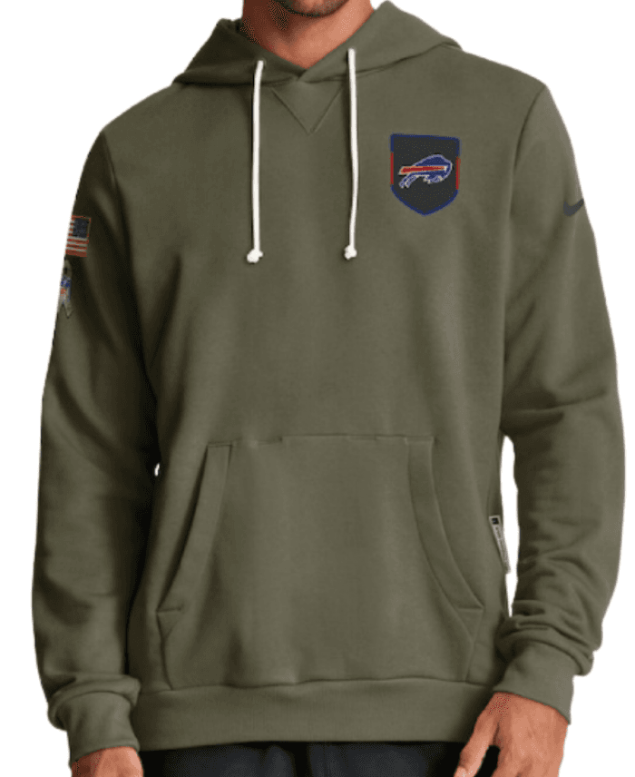To help you wear your team while showcasing your support for our freedom protectors, Jacket Era is here with a new hoodie. Fans of the American football team, the Buffalo Bills, are you guys ready to steal the show? Take a slide into the sleek and trendy Buffalo Bills 2025 Salute To Service Hoodie, a masterpiece full of respect and attitude. Moreover, it’s what helps you cheer for the Bills and salute the heroes with timeless style, warmth, pride, and purpose. On the other hand, this olive green hoodie is a collaborative creation that blends loyalty and legacy in one piece. It is a result of the collaboration between popular sports brand Nike and the famous NFL team, the Buffalo Bills. Thus, make it yours to represent the Buffalo Bills in a hoodie that speaks volumes!