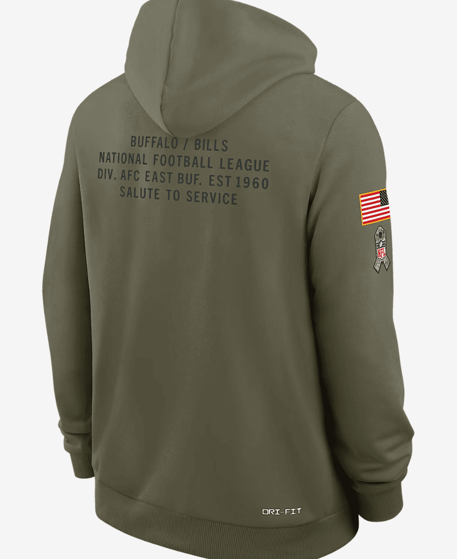 Purchase this Nike x Buffalo Bills 2025 Salute to Service Sideline Hoodie now from here at an affordable sale price.