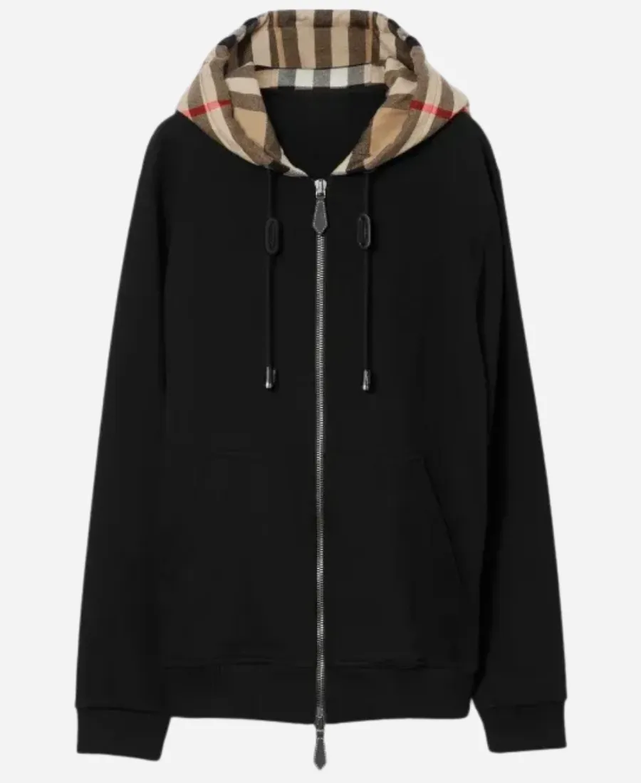 Unisex Burberry Black Check Hood Zip Up Hoodie
