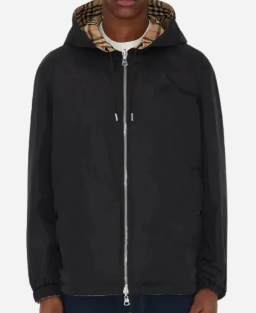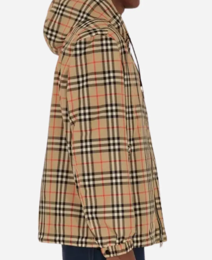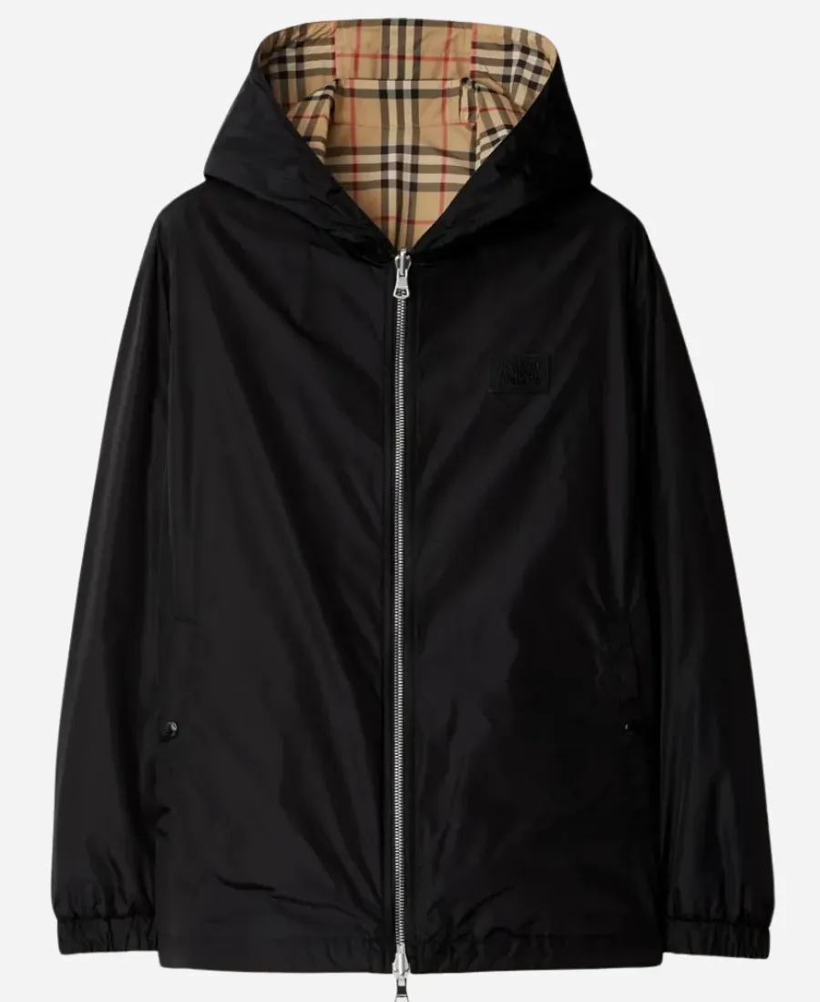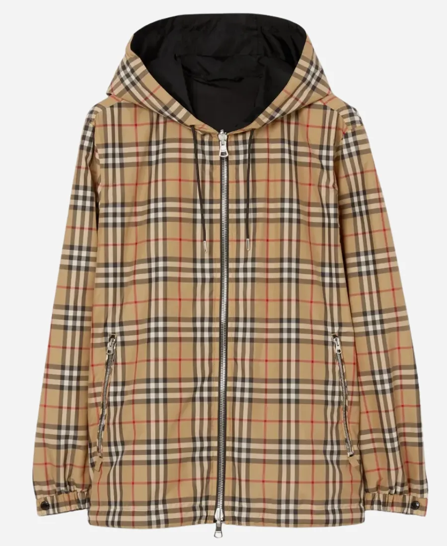Unisex BURBERRY Reversible Check Shell Beige & Black Hooded Jacket