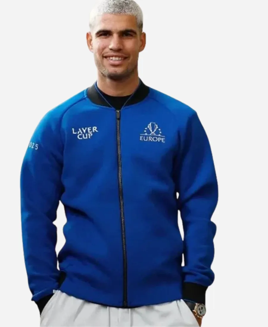 Bring the heat of the 2025 Laver Cup to your wardrobe by adding the famous Carlos Alcaraz Laver Cup 2025 Team Europe Blue Jacket. Are you a fan of the handsome Spanish professional tennis player Carlos Alcaraz? This trendy blue masterpiece is an elegant pick to channel his energetic spirit with modern style. Jacket Era is here with this blue jacket for you all, especially for the fans of Carlos Alcaraz. Moreover, it comes from the closet of Carlos Alcaraz, who wears this outerwear at the men’s tennis tournament, the 2025 Laver Cup. Wearing this jacket, he showcases his loyalty and affection for Team Europe. On the other hand, it combines modern-day style with team vibes elegantly in one single piece. So, try it now and give your outlook a fresh, sporty touch without trying too hard.