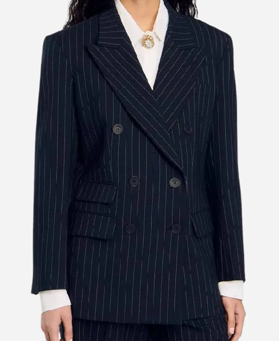 Purchase this Sydney Price Champagne Problems 2026 Minka Kelly Black Pinstripe Blazer now from here at an interesting sale price.