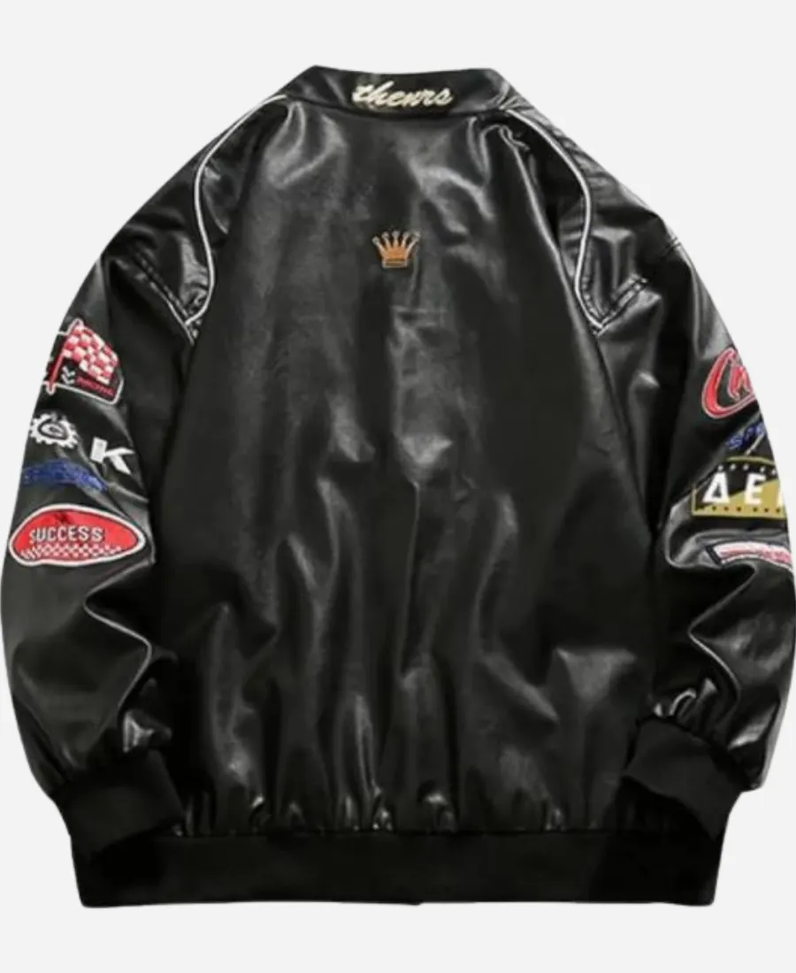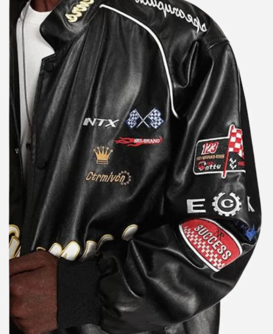 Champs Motorcycle Racing Oversized Black Leather Bomber Jacket