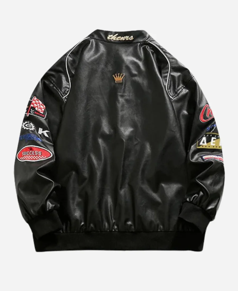 Champs Racing Style Black Leather Jacket