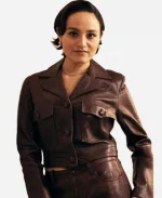 Chase Sui Wonders TV Series The Studio Premiere Brown Cropped Leather Jacket For Sale