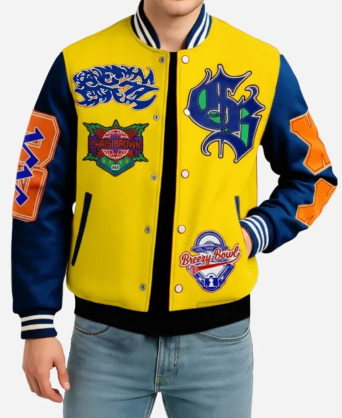 For a true fan of Chris Brown, Jacket Era is here with a jacket that helps you celebrate Brown’s 20 years of excellence. To become a part of this celebration, take a slide into the gorgeous Chris Brown 2025 Breezy Bowl XX Tour Varsity Jacket. This alluring yellow varsity jacket is the best investment for those who want to channel Chris Brown’s vibes. Moreover, it comes from the closet of the handsome and our favorite American singer, Chris Brown. He wears this intriguing outerwear in his ongoing and famous concert tour, the Breezy Bowl XX. On the other hand, with a lively stage performance and this yellow jacket, Chris Brown steals our hearts. He provides us with a jacket that helps us make a bold statement without trying hard. So, to make your persona steal the spotlight just like him, give a try to this exquisite yellow letterman varsity jacket!