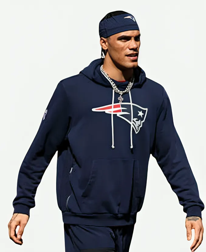 NFL 2026 Super Bowl LX Christian Gonzalez New England Patriots Navy Blue Sideline Hoodie