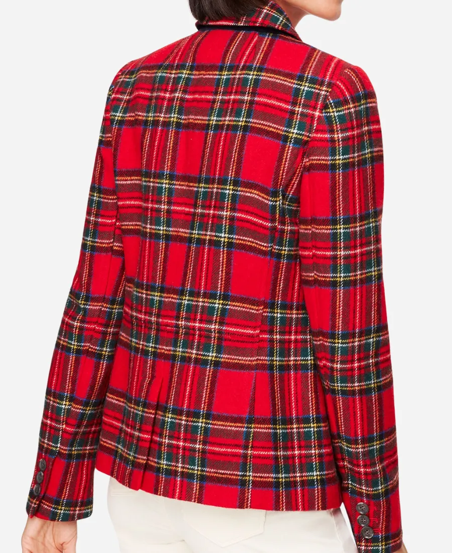 Women’s Classic Christmas Check Plaid Red Blazer