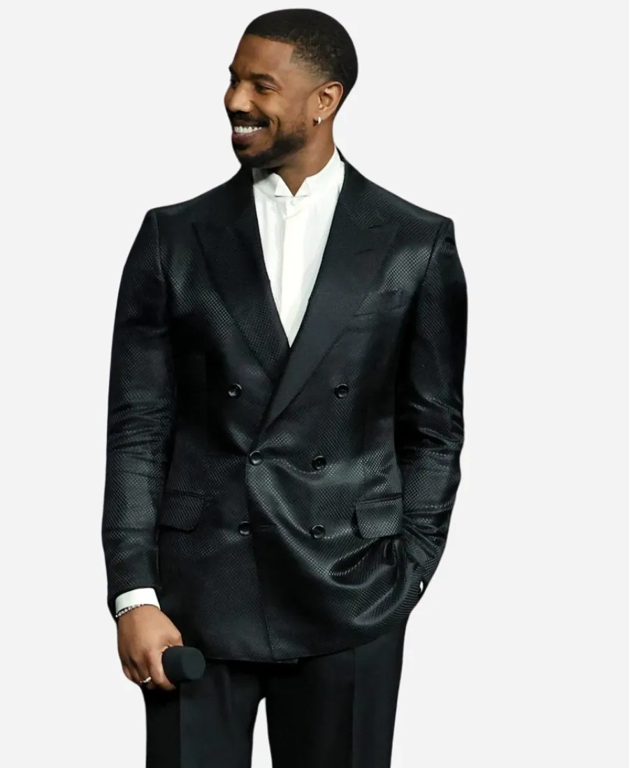 Dressing up for a formal event or for a family function. This exquisite CinemaCon 2026 Michael B. Jordan Blazer is the right pick. It is right as it seamlessly blends the vibrant energy of CinemaCon 2026 with premium craftsmanship and modern elegance. Moreover, this black blazer is now available at the Jacket Era. It is available here in the latest collection in different sizes in high-end suiting fabric. The professionals of the Jacket Era craft this black blazer with top-notch stitching. It is very comfortable to wear, thanks to its butter-soft inner lining. However, the stylish and durable double-breasted front makes it easy to wear over any outfit. The long sleeves and buttoned cuffs make it look complete, while the notch lapel style collar adds more spice to its aesthetics. Thus, make it yours to be the center of attraction, just like Michael B. Jordan.