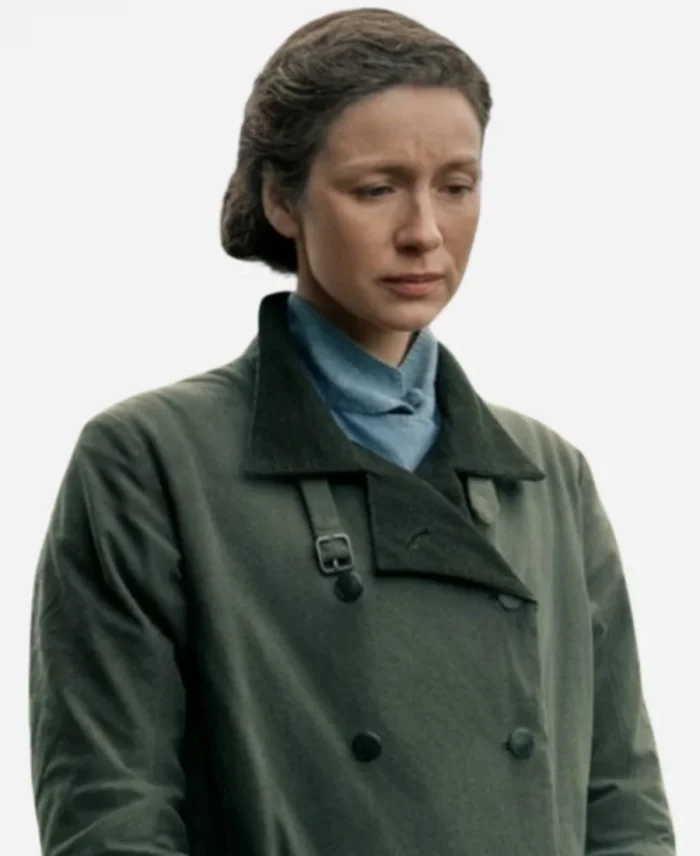 Caitríona Balfe Outlander Season 07 Claire Randall Double Breasted Green Trench Coat For Sale