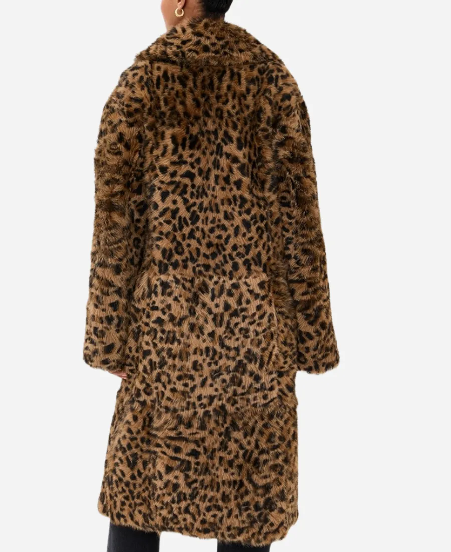 Dakota Johnson Los Angeles Leopard Print Shearling Fur Coat