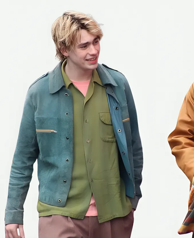 Deacon Phillippe Movie 4 Kids Walk Into a Bank 2026 Blue Suede Leather Jacket